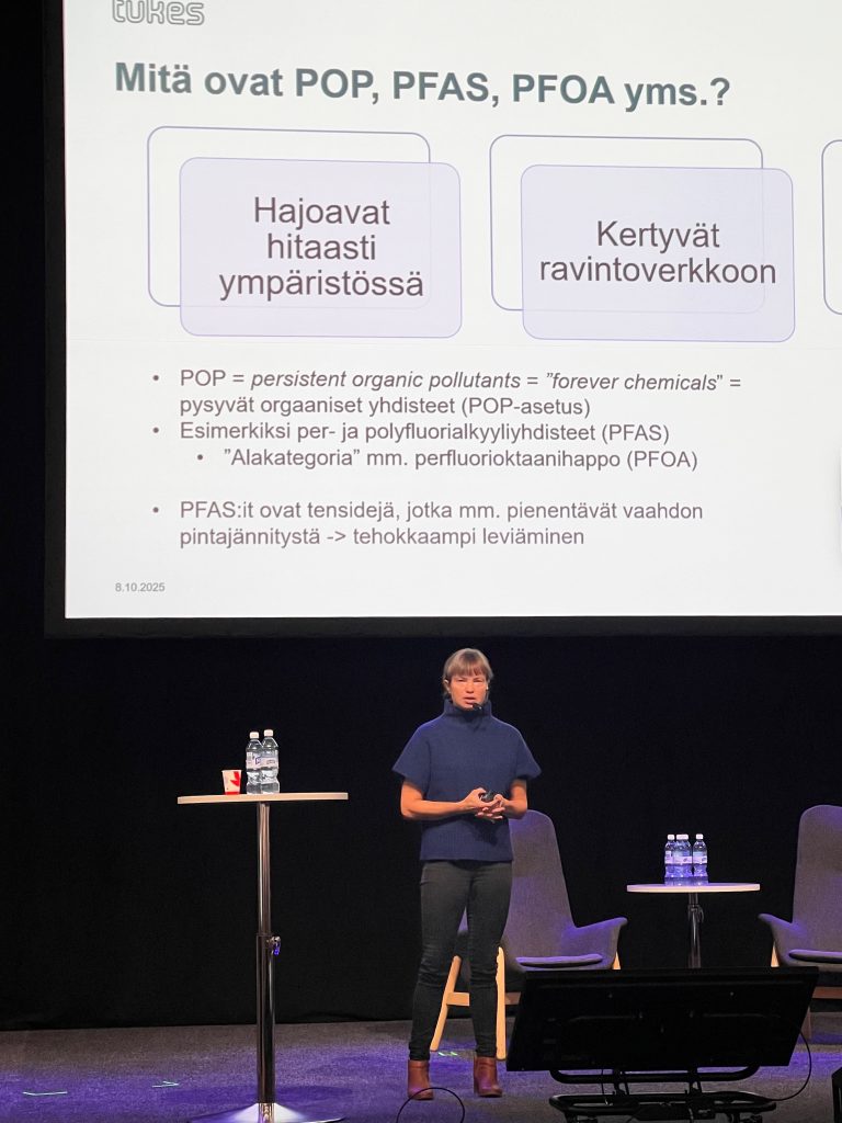 Ajankohtaista PFAS-asiaa oli valottamassa Turvallisuus- ja kemiaaliraston ylitarkastaja Karoliina Meurman.